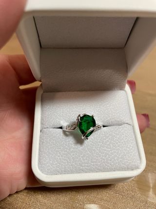 Anillo con un diseño elegante y llamativo. - Montura de plata. - Piedra central de color verde brillante.