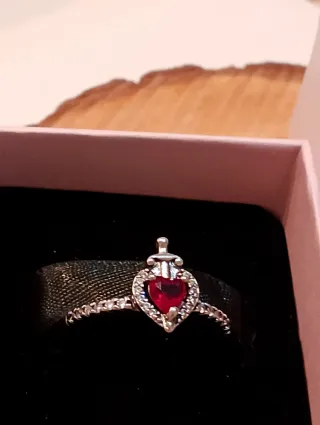 Anillo de plata de ley 925 con un diseño de corazón rojo y circonitas. - Plata de ley 925. - Diseño de corazón. - Circonitas brillantes.Preciio sin caja la caja son 5€