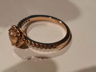 Elegante anillo Pandora con diseño de corazón. - TALLA 14 - Fabricado en oro rosa de 14 quilates. - Detalle de circonitas brillantes alrededor del corazón. - Anillo sin estrenar por talla incorrecta
