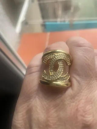Anillo Chanel Diseño Doble C Circonitas Oro