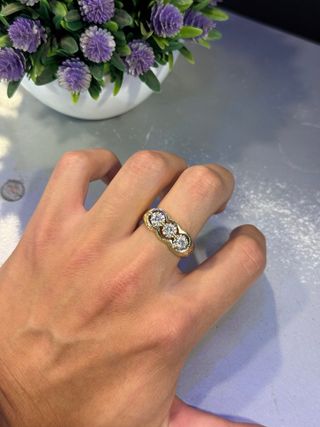 Anillo tresillo oro 18k y brillantes