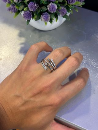 Elegante anillo con baño de oro de 18 quilates, adornado con múltiples circonitas brillantes. - Diseño multicapa. - Acabado pulido.