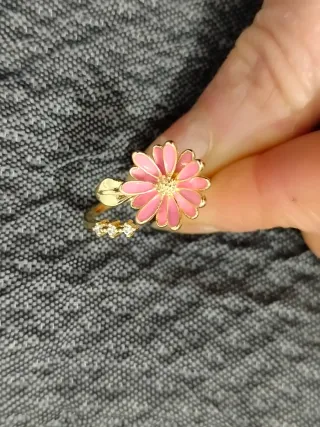 Anillo ajustable flor rosa y oro