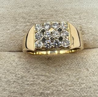 Anillo tipo sello, de oro de 18 kt con diamantes talla brillante. Talla: 14. Se ajusta la talla sin coste adicional. Se adjunta certificado. Whatsapp para consultas: 602 04 27 50 Se hacen envíos express asegurados y certificados. El envío llega entre 1-2 días laborables. Se hacen envíos a Contrarembolso. Se entrega en caja de lujo y se empaqueta como regalo si lo necesita. Cualquier pregunta no duden en contactar. En el perfil hay muchas más joyas de todo tipo y época. Se le puedo poner grabado.