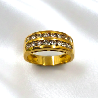 ¡Déjate seducir por este espectacular anillo de oro de 18k, una pieza que exhala pasión y elegancia en cada destello! Sus dos bandas de brillantes no solo capturan la luz, sino que crean un fuego infinito de brillo que realzará tu mano con un lujo verdaderamente inigualable. Con un peso sólido de 7.90 gr, un ancho imponente de 7.58 mm y en medida nº 16, lo que lo convierte en una joya única y deslumbrante. B01587476 Puedes contactarnos por whatsapp al 659 916 294 o visitar nuestra web joyeriatynel.com para ver más opciones. Te ofrecemos facilidades de pago, envío seguro y gratuito, y devolución en 14 días. Además, te lo mandamos en