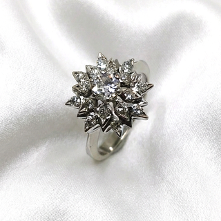 Deslumbra con este espectacular anillo vintage realizado en oro blanco de 18 quilates, cuyo impresionante diseño frontal en forma de estrella está cuajado de brillantes que envuelven un magnífico diamante central de 0.50 ct. Es una joya de gran presencia y elegancia, con un ancho notable de 14.88 mm, un peso de 4.96 gramos y en medida nº 15, perfecta para quienes buscan una pieza única que capte todas las miradas. B01587475 Puedes contactarnos por whatsapp al 659 916 294 o visitar nuestra web joyeriatynel.com para ver más opciones. Te ofrecemos facilidades de pago, envío seguro y gratuito, y devolución en 14 días. Además, te lo mand