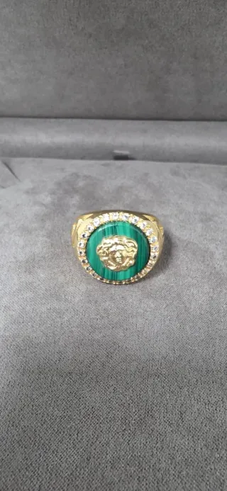Anillo Versace Oro 18k con Malakita y Circonitas