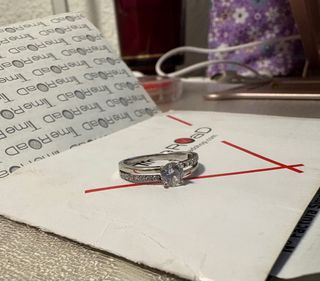 Tipo de Joya: Anillo de banda plana con diamante. • Marca: Cartier (basado en los grabados y el empaque). • Material: Oro blanco de 18 quilates (confirmado por el grabado "750" en el interior). • Diseño: Se trata de una banda de estilo moderno y minimalista con bordes rectos. Presenta el logotipo de "Cartier" grabado en la parte frontal exterior, acompañado de un diamante de talla brillante engastado a ras de la superficie (tipo setting suizo o níveo). • Talla: 54 europea (equivalente a talla 6 en EE. UU./México).