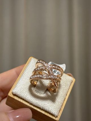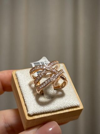 Anillo elegante color oro rosa con diseño cruzado moderno decorado con circonitas brillantes. Un modelo muy sofisticado que aporta brillo y elegancia a cualquier look. Perfecto tanto para uso diario como para ocasiones especiales. 💎 Diseño moderno cruzado 💎 Incrustaciones de circonitas brillantes 💎 Muy elegante y femenino 💎 Ideal como regalo 📮 Solo envío por correo (no entregas en mano)