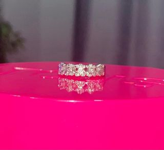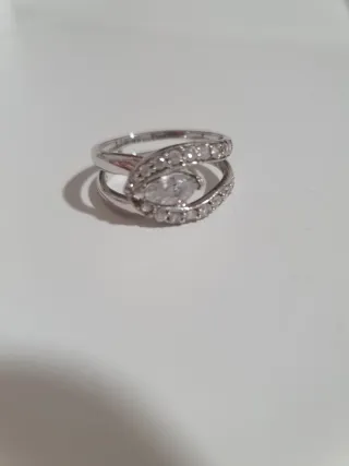 Elegante anillo con un diseño llamativo y brillante. - Material: Plata - Acabado: Chapado en oro blanco