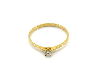 Elegante anillo de pedida con un brillante central de 0.20 quilates. Su diseño clásico lo hace perfecto para una ocasión especial. - Diseño de cuatro garras para sujetar la piedra. - Banda del anillo fina y delicada.