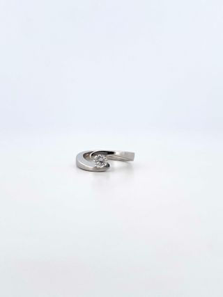 Elegante anillo de oro blanco con un brillante central. Una pieza clásica y sofisticada. - Diseño moderno con detalles en oro blanco. - Brillante central engastado.