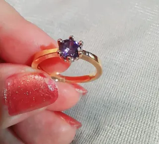 REBAJAS ENERO!! POR LA COMPRA DE 2 ARTICULOS LLEVATE UNO DE VALOR DE 5e O MENOS DE REGALO !! Pieza de joyeria fina. Precioso anillo chapado en oro 18k. Tipo solitario. Sello 18K GPYG Lo que indica que la joya está chapada con oro auténtico de 18K Piedra de circonita lila CZ. Se envía con bolsita de Jute de regalo. Talla 19. - Diseño clásico y brillante. - Montura con seis garras doradas.
