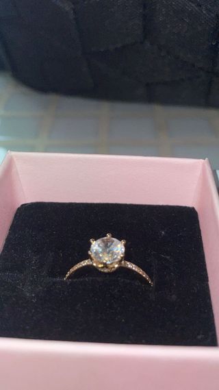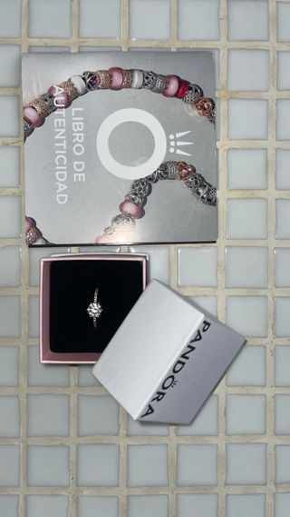 Anillo de Pandora con baño de oro de 18 quilates. Un diseño elegante y brillante. Costo 99€, aparece el tiket en las fotos. - Baño de oro de 18 quilates. - Diseño con circonitas. - talla 48