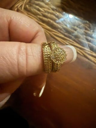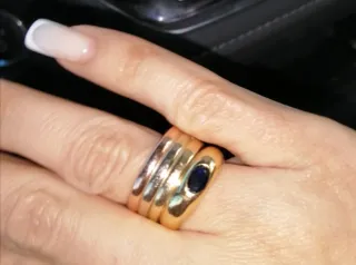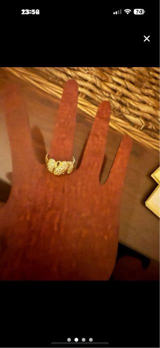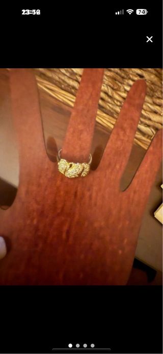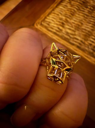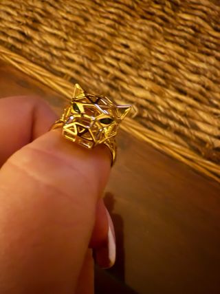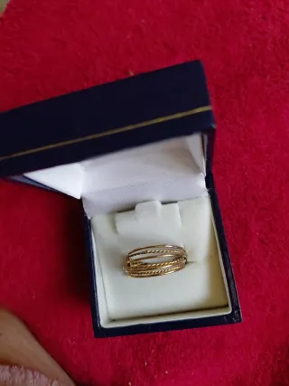 Elegante anillo chapado con un diseño llamativo. mi dedo mide 5,5 (la medida estándar del anillo no es fiable) - Acabado brillante y texturizado. - Diseño en espiral.