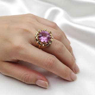 Elegante anillo con un diseño llamativo y detalles brillantes.10gr,Talla 14 - Montura de oro.18k - Incrustaciones de diamantes.