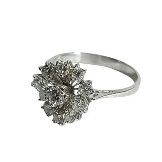 Elegante anillo de oro con diamantes.Anillo de oro blanco de 18 Kts,con brillantes en forma de roseta rodeada de oro.Es una talla 12, Pesa 5,4 grs.tiene un peso en brillantes aproximado de 0,35 Qts YP-41095 ((SECOND CHANCE))Calle Virgen de los Peligros 11