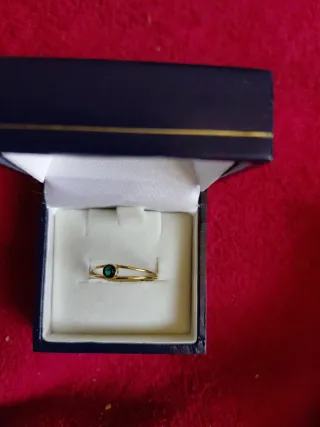 Elegante anillo de oro laminado de 14 quilates con una piedra central de color verde. - Diseño moderno y delicado. - Acabado brillante.