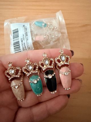 Conjunto de anillos para uñas con diseño de corona, adornados con brillantes. - Diseño de corona con detalles. - Adornos tipo diamante. - Varios colores