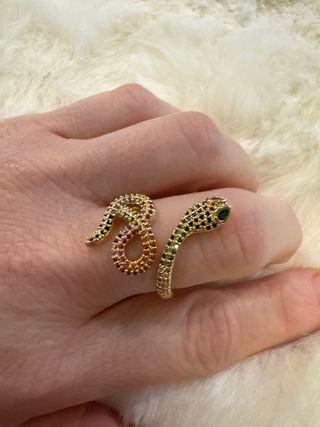 Elegante anillo con diseño de serpiente. - Laminado en oro de 14 quilates. - Detalle de serpiente. - Acabado brillante. -anillo ajustable