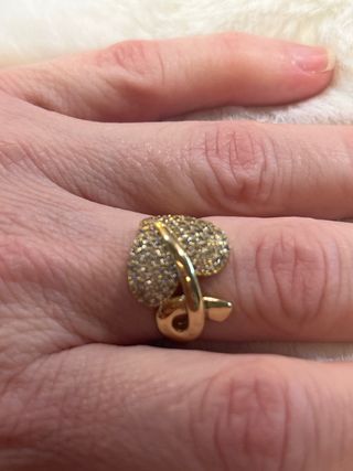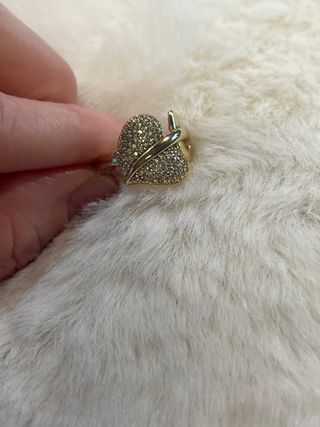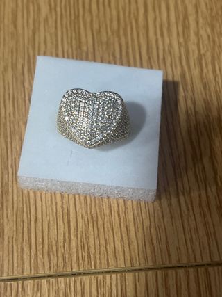 Anillo con diseño de corazón, laminado en oro de 14 quilates. - Talla 7 (diámetro 17.3 mm). - Cubierto de pequeñas gemas brillantes.