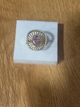 Elegante anillo laminado en oro de 14 quilates con un precioso diseño. - Diseño con piedra central rosa. - Aro exterior con detalles brillantes.