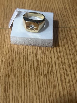 Anillo laminado con un diseño central de estrella y una piedra brillante. - Material: Oro laminado 14k. - Talla: 11.
