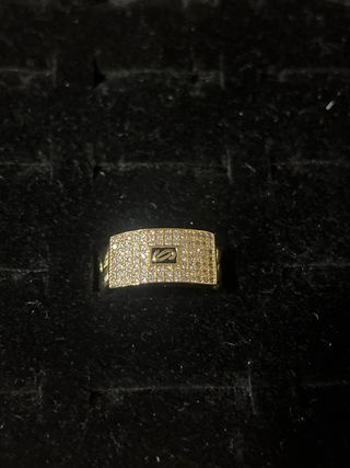Elegante anillo laminado en oro de 14 quilates con un diseño moderno y detalles brillantes. Perfecto para añadir un toque de distinción a tu estilo. - Diseño con incrustaciones de pequeñas gemas. - Acabado pulido y texturizado.