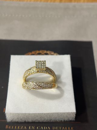 Preciosos anillos dorado con brillantes. ✨ - Dos anillos de diseño elegante. - Piedras brillantes engastadas. - Ideal para ocasiones especiales.