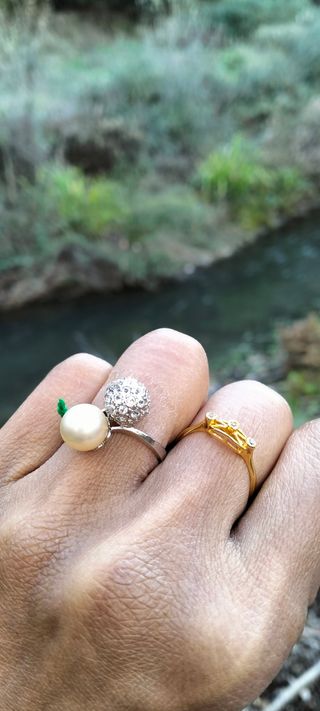 A estrenar. Preciosos anillos, uno con circonitas engastadas y otro de diseño minimalista. - Tamaño: 21 mm aprox. (ver foto). - Juego de dos anillos. - Material: latón y circonitas. - Diseño elegante y delicado. - Circonitas transparentes brillantes.