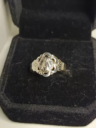 Anillo de plata de ley con diseño calado de la Virgen. - Material: Plata de ley. - Diseño: Virgen calada. - Diámetro: 14.1 mm. El artículo que se envia es el de las fotos para más información preguntar sin compromiso gracias 😊. Solo se hacen envíos ⚠️