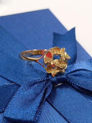 Elegante anillo de oro de 18 quilates con un diseño floral. - Material: Oro de 18K. - Diseño: Floral. - Acabado: Brillante. - Fabricados en oro de 18 quilates.Pesa 2.21 gm. Talla 14 Ref.J00001069 Estamos en C/Indústria 285 Bajos 1 BARCELONA Hacemos envíos a domicilio. Consúltanos sin compromiso PRECIOS NO NEGOCIABLES