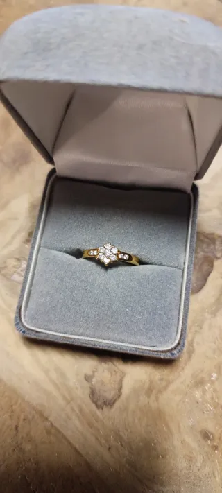 Vendo anillo,baño en oro.ANillo para niña,especial comunion....o para dedo pequeño de mujer. 1,5 cm aprox d diametro.esta en perfecto estado.(le falta una piedrita,apenas se nota)
