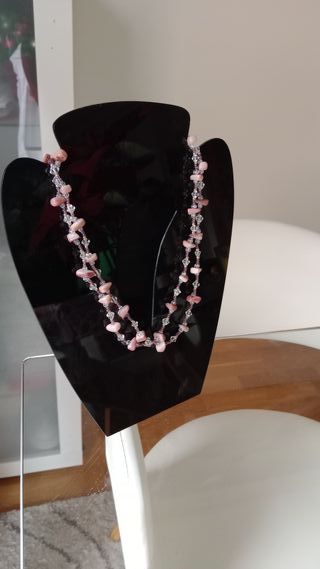 Elegante collar largo con un diseño de dos hilos entrelazados. - Perlas irregulares de color rosa. - Cristales transparentes intercalados. Hago entregas en Boadilla del monte Majadahonda Móstoles Alcorcón Alcobendas. Envíos. Más regalos en mi perfil pulseras anillos gargantillas oro plata diamantes relojes tartas cumpleaños comunión bautizo bodas ramos flores invitaciones joyeros cajas bebes coronas corazones nombres personalizados real Madrid Lilo Stitch hilo disfraces navidad bolas marcapáginas princesas elástico piedra buda hadas brujas marcos coche moto carreras abalorios expositor dorado