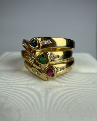 Anillo Oro 18K Corazón Zafiro Esmeralda Rubí Diama