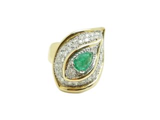 Se vende Anillo de oro amarillo de 18 quilates macizo con Diamantes y Esmeralda de segunda mano. 41 Diamantes de talla simple con un total de 1.64 quilates y una Esmeralda de talla Lágrima con 0.95 quilates aproximadamente. Peso: 15.6 gramos. Talla: 16. Grosor máximo: 30 mm. Grosor mínimo: 5.3 mm. Joya de oro de segunda mano en perfecto estado sin marcas de uso (ver fotos). 1 año de garantía. ¡Reserva ahora con facilidad eligiendo nuestro "Pago a Plazos" y disfruta de la comodidad y flexibilidad financiera que necesitas! Consúltanos en cualquiera de los canales habituales. Envíos en 24h. Código interno: 114271