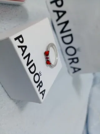 Anillo de Pandora con diseño de lazo inspirado en Blancanieves. Sin usar. No se ha usado prácticamente nunca . De la talla 52. Se puede pedir el ticket de compra con una garantía de 3 años el cual conservo Con bolsa y caja en perfecto estado . - Detalles en esmalte rojo. - Pequeñas gemas incrustadas en la banda.