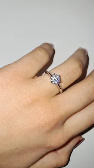 Anillo de moisoanita es de 1ct (1 quilate) de color plata. Es ajustable. Incluye el certificado GRA. Ha pasado la prueba del detector de diamantes como se ve en la foto. Se pueden pedir más detalles por el chat.
