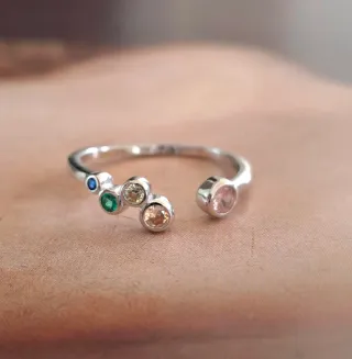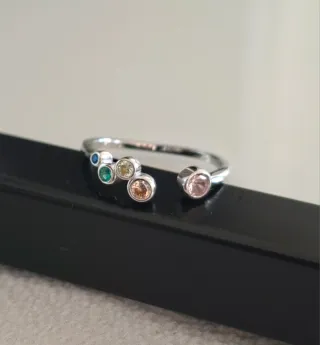 -Envíos gratis a partir de 40€. 🛫Envíos en 24h. Todos los pedidos van en caja o bolsita de joyería. Anillo de Plata de Ley con un diseño abierto y ajustable. Presenta varias gemas de diferentes colores engastadas. - Diseño abierto y moderno. - Gemas de colores variados. - Plata de Ley 925.