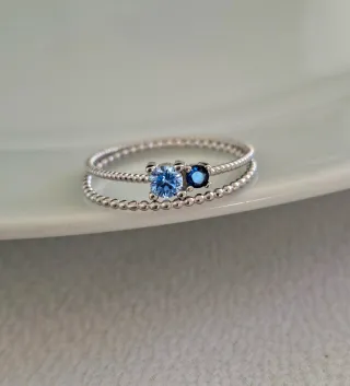 -Envíos gratis a partir de 40€. 🛫 Envíos en 24h. Todos los pedidos van en caja o bolsa de joyería. 💍 Elegantes anillos de plata de ley apilables. Presenta dos gemas azules, una redonda y otra cuadrada, que le dan un toque de color. Lo acompaña un anillo de cuentas. - Elaborados en plata de ley. - Diseño abierto y ajustable. - Dos gemas de color azul.