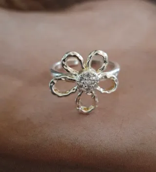 Envíos gratis a partir de 40€. 🛫 Envíos en 24h. Todos los pedidos van en caja o bolsita de joyería. 💍 Elegante anillo con diseño de flor y detalles brillantes. - Elaborado en plata. - Centro adornado con pequeñas circonitas.