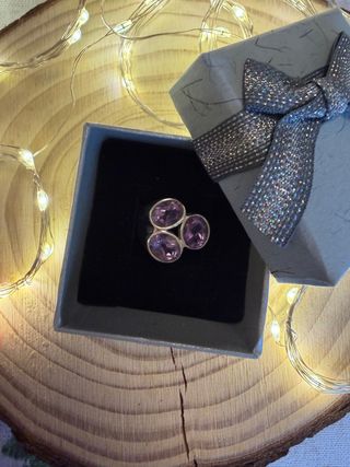 Elegante anillo de plata de ley con tres amatistas moradas de corte ovalado. Talla 11.5 en la descripción no me deja poner menos mm. - Diseño con tres piedras. - Montura de plata de ley. La amatista proporciona protección y conecta con tu espiritualidad. Revisen mi perfil . Regalo con pedido superior a 25€