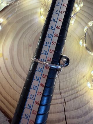 Anillo de plata de ley 925 con diseño de luna y piedra de ónix. Talla 13mm No deja poner menos mm en la descripción - Diseño de luna creciente. - Piedra central de ónix. - Plata de ley 925. El onix se considera la piedra de protección, fuerza mental y física, equilibria los chakras. Revisen mi perfil . Regalo con pedido superior a 25€