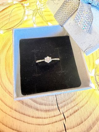 Sí, este es el anillo de pedida. Lo elegí yo porque, seamos honestos, él no tenía ni idea de qué comprar… y la pedida fue toda una experiencia: cocina de un apartamento, con sus hermanos pequeños de testigos 🙃. El anillo es precioso, brillante y listo para alguien que sí sepa apreciarlo. Nuevo en estado, solo falta un dueño con mejor gusto que el original 💁♀️. Ideal para quien quiera un toque de historia y humor en su joyero.