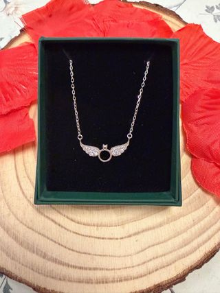 Elegante collar de plata de ley 925 con un diseño de alas y un anillo central. - Material: Plata de ley 925. - Diseño: Alas con anillo. - Acabado: Brillante. PEDIDO MÍNIMO PARA ENVÍO 10€. Revisen mi perfil para ver más joyas. Regalo sorpresa a partir de 25€ de compra