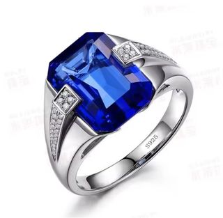 Elegante anillo con un llamativo zafiro azul central y detalles de pequeños diamantes a los lados. La inscripción S925 indica su autenticidad en plata. - Zafiro azul de corte esmeralda. - Biselado con diamantes pequeños. - Montura de plata S925.