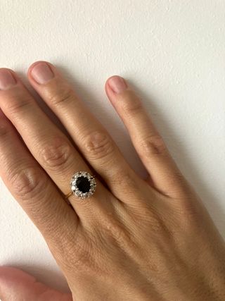 "marca: sin marca gramos: 1.43 modelo: sin modelo talla: 17 contraste: sí tipo de oro en kilates: oro primera ley (oro 18k con piedra) detalles joya: anillo oro 18k roseton de 7 diamantes talla brillante piedras: 7.0 color de las piedras: pureza vs color h peso piedras: 0.29 genero-tipo: mujer diamante: sí tipo de piedra: diamante piedra: sí" "✨ Fotos 100% reales del producto. 🛡️ Garantia, Oro y piedras Certificadas. 📦 Envío incluido. 🏪 Y si vienes a nuestra tienda en Floridablanca 145 te llevas además un 5% de descuento. ✅ Pago y envío seguro de Wallapop PRO. "