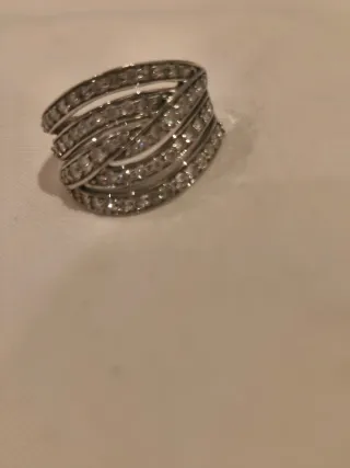Elegante anillo con un diseño moderno y brillante. - Detalles en forma de zigzag. - pavé de diamantes. - Acabado plateado.