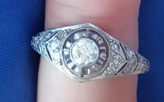 Elegante sortija de compromiso de estilo vintage, con un diseño delicado y atemporal. De la década de 1920. Irrepetible. La medida con cinta métrica es de 17mm. Te sentirás alguien especial y te durará toda la vida - Montura en plata. - Detalles con pequeñas piedras que no son circonitas porque no se usaban en aquella época pueden ser diamantes de escaso valor - Diseño central con una piedra principal.