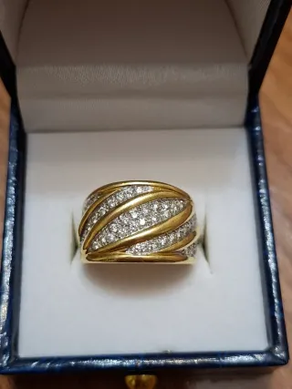 Elegante anillo con un diseño llamativo y detalles brillantes. 10gr. 47diamantes - Montura de oro. 18k - Incrustaciones de diamantes.